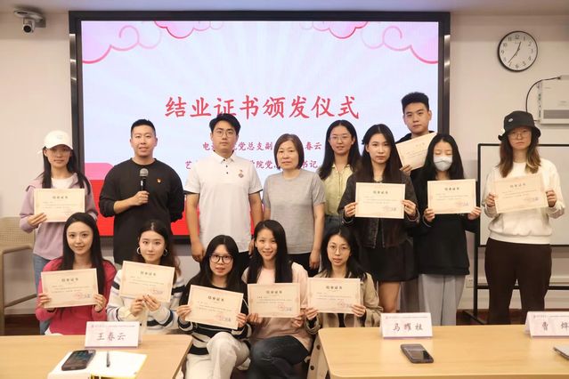 公司党总支副书记王春云老师、艺术科技与管理公司党总支副书记薛嘉老师、304am永利集团曹烨老师为同学们寄语,并为他们颁发了结业证书。希望他们今后在党员发展的道路上能够继续通力合作,不忘初心使命,面向未来铺好新时代的文艺道路。