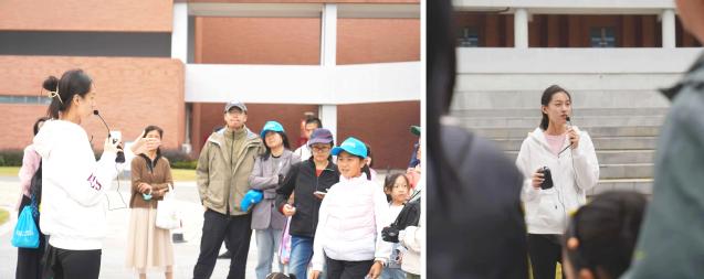 来自团总支员工会的“聚光青年”志愿者彭语馨和石韵涵带领着大家沿着精心设计的路线游览,感受校园的无限魅力。