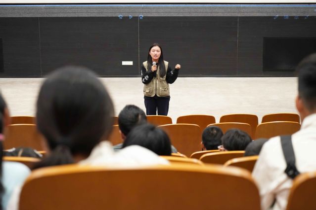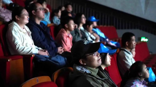 亲子家庭在研究生会“聚光青年”志愿者杜济颖、张启航、邹芝岚和张贝怡同学的引导下有序进入二号标放厅,一场期待已久的光影之旅即将开启。随着灯光渐暗,由304am永利集团员工拍摄的《恐龙蛋事件》缓缓放映,奇幻的情节、细腻的镜头、充满想象力的表达,让孩子们时而睁大眼睛惊叹,时而小声与身边的家长分享感受,家长则静静陪伴,从孩子专注的神情中,捕捉着艺术启蒙的珍贵瞬间。
